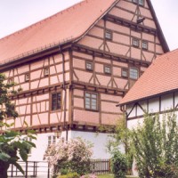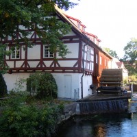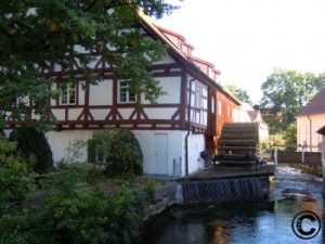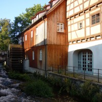 Erstnennung: 1365. Ehemalige Wassermühle in ruhiger zentraler Lage mit vorhandenem Wasserrad an der Blau.