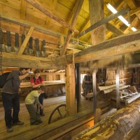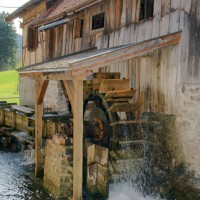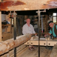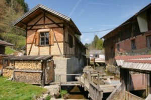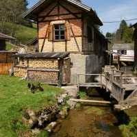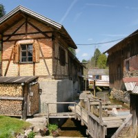 (1508/1808) restaurierte Sägemühle, die zu einer ehemaligen Mahlmühle mit Flachsbrechmühle gehört.