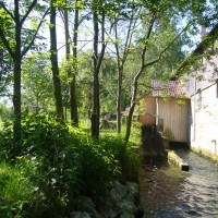 Historische Sägemühle mit Wasserrad an der Rottum von 1906 (1845 erstmalige Erwähnung einer Mühle an dieser Stelle).